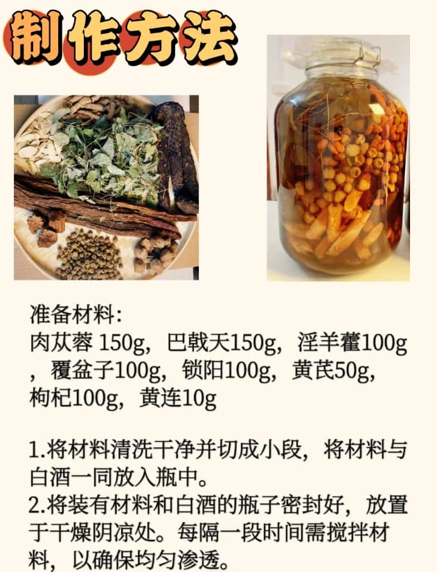 今天我要给大家带来一款倪海厦秘方的养生酒!🎉 这款酒融合了多种珍贵材料,每一口都是对身体的滋养!💪 倪海厦老师的配方,专为现代人的亚健康状况量身打造,让你的身体得到贴心的照顾。 🌱准备材料: 肉苁蓉 150g, 巴戟天150g,淫羊藿100g,覆盆子100g,锁阳100g,黄芪50g,枸杞100g,黄连10g 制作方法我已经为你准备好了,简单易懂,跟着做,你也能成为家里的养生达人!喝了五六天,确实有效果,别犹豫了,赶紧试试吧。🍶